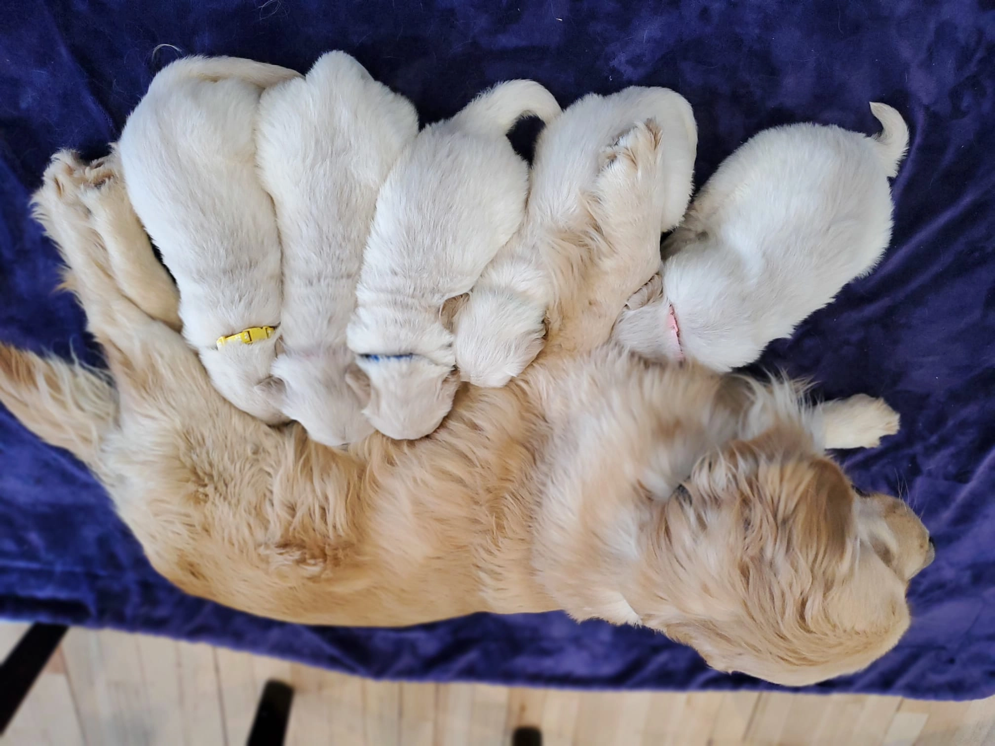 – Parent Goldens as well as puppies are raised among our family, ensuring highest level of care and upbringing. In addition, we participate in socialization programs such as Puppies & Yoga.